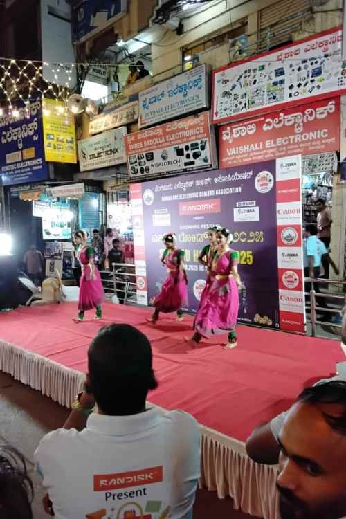Organizing entertainment for a corporate hall is one thing. The audience is seated. They are looking at the stage. But organizing entertainment for a busy street like S.P. Road? That takes a special kind of expertise. The crowd here is constantly moving. They are carrying heavy boxes. They are haggling over prices.